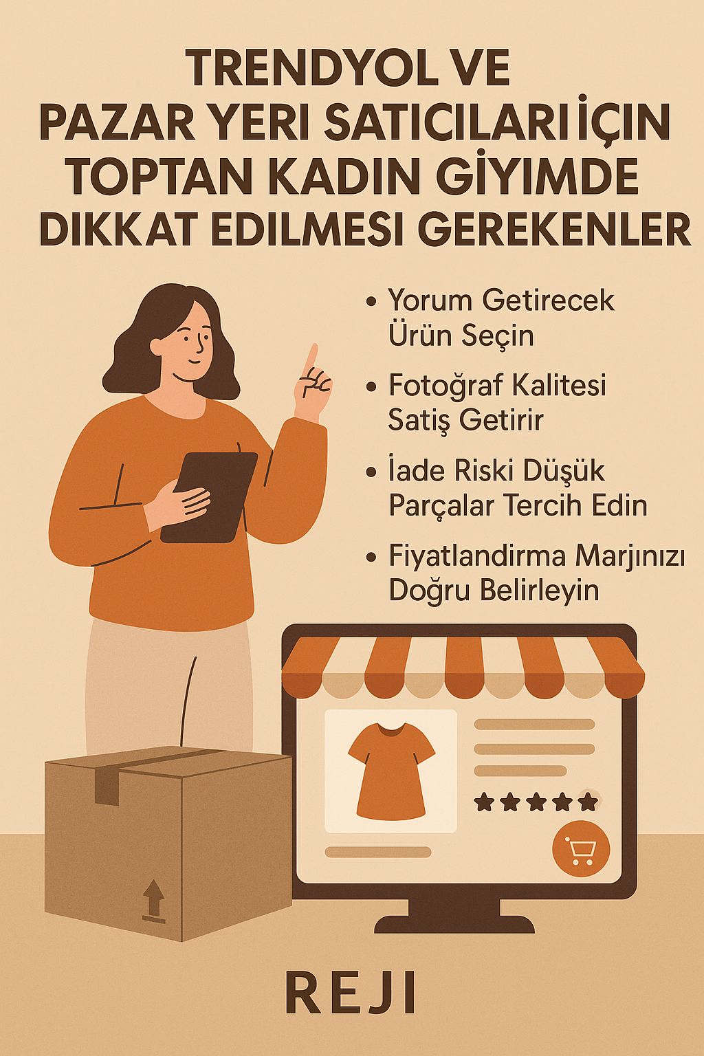 Türkiye’de e-ticaretin en yoğun yapıldığı alanlardan biri pazar yerleri. Özellikle Trendyol, Hepsiburada, ÇiçekSepeti gibi platformlarda satış yapan kadın giyim satıcıları için tedarik süreci büyük önem taşır. Reji olarak, bu platformlarda satış yapan işletmelere özel çözümlerle hızlı ve risksiz satış imkânı sunuyoruz. İşte başarılı bir tedarik süreci için ipuçları: